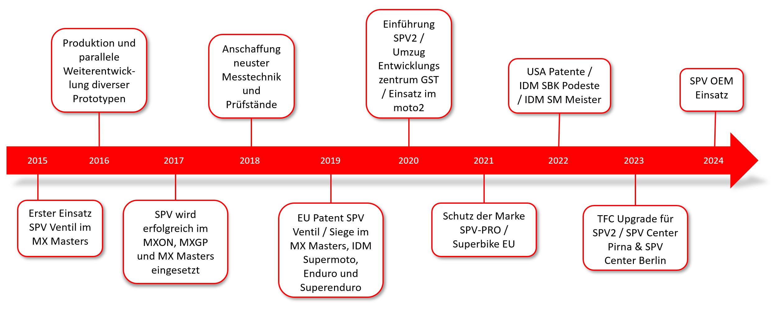 Die Erkenntnis, dass die Shims Technologie in all ihren Variation, schon lange am Ende ihrer Möglichkeiten ist und die Modellierung optimaler Kraft-Kennlinie mit Shims nur bedingt ist, führte zur Entwicklung eines eigenen Ventils – dem SPV.