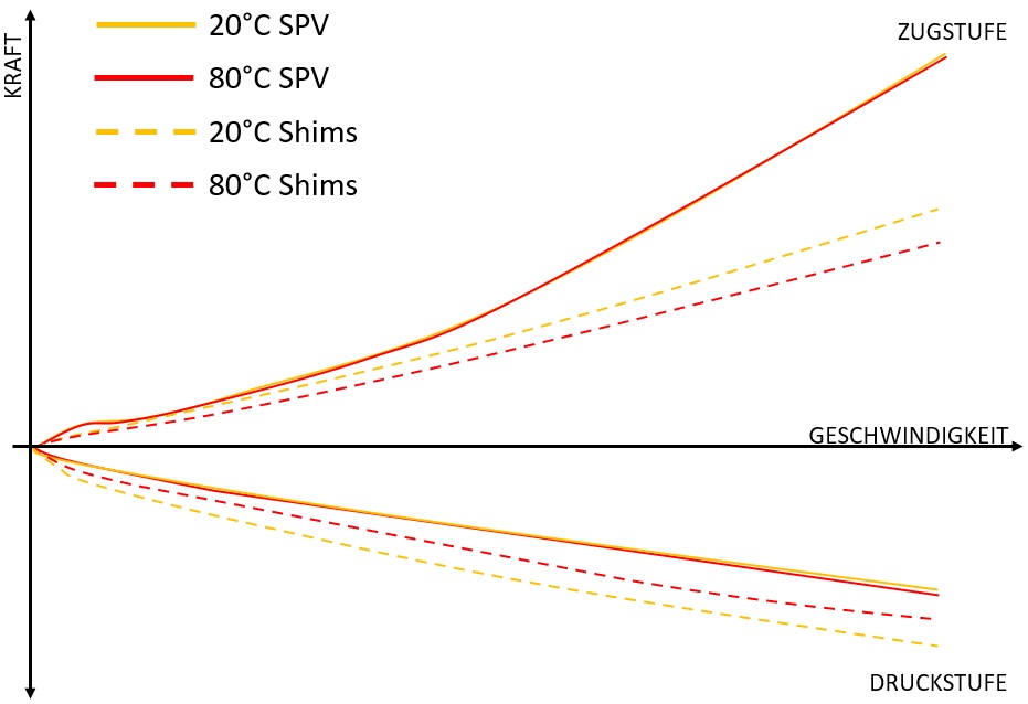 Die SPV Technologie ermöglicht die komplette Trennung von Zug- und Druckstufe, bei komplett freier Wahl der Dämpfungscharakteristik. Es ist möglich vom Progressiven ins Degressive und zurück zum Progressiven Anstieg der Kräfte zu gehen.