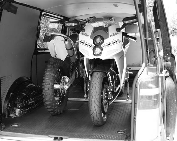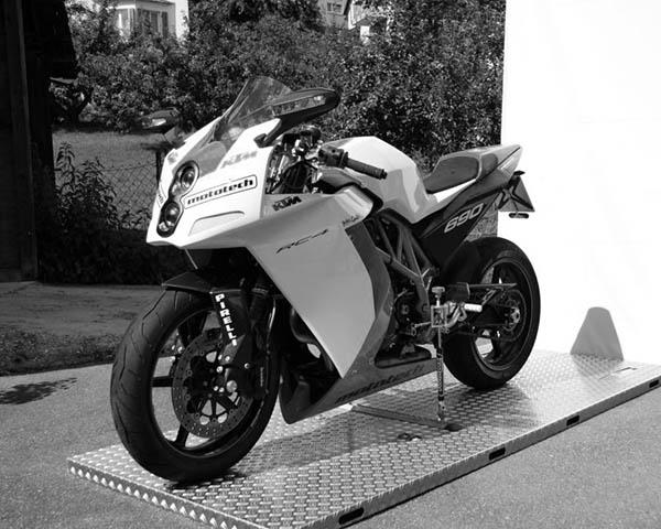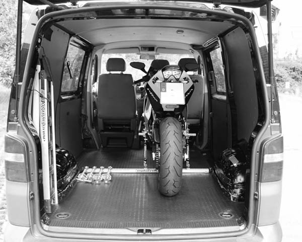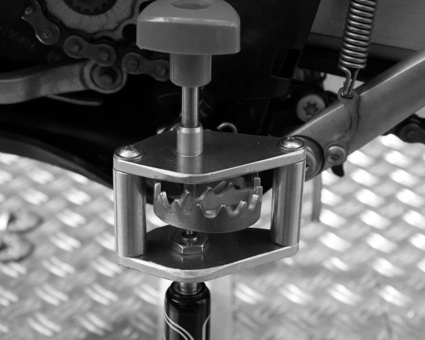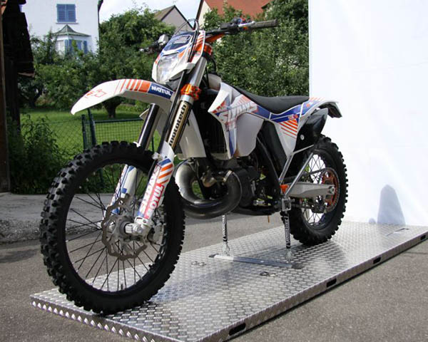 Weitere Vorteile sind der stufenlose Spannbereich, der von der 85er Motocross Maschine bis zur Enduro BMW GS reicht.